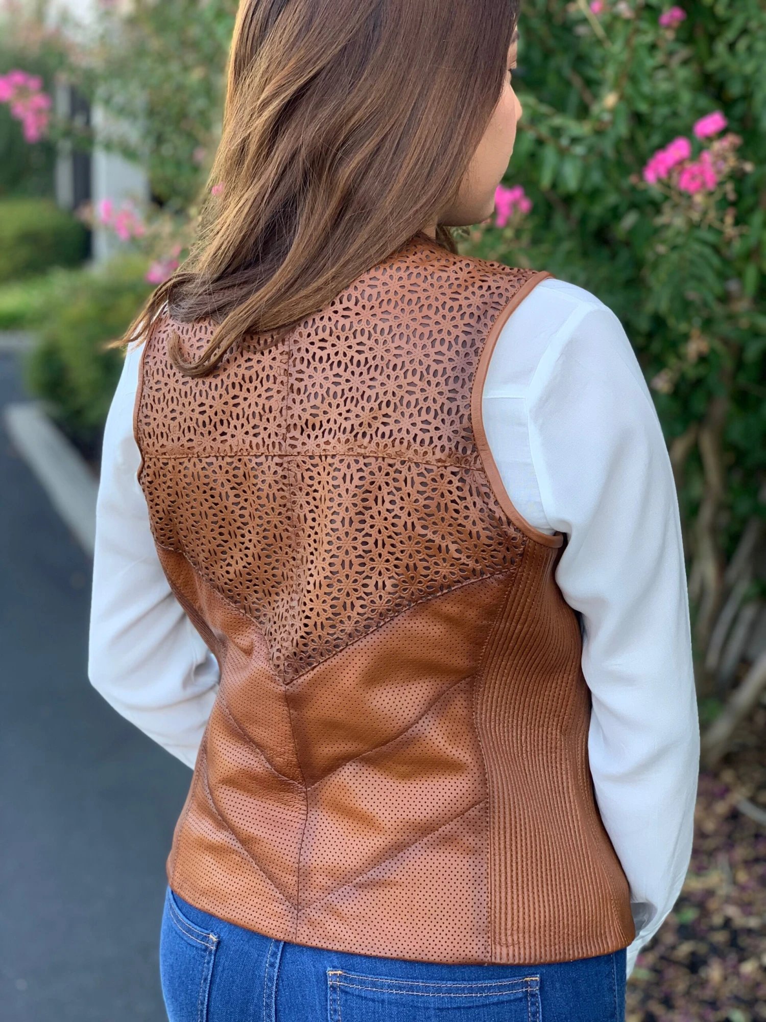 Chaleco Para dama Piel de Bovino Diseño Perforado.Â