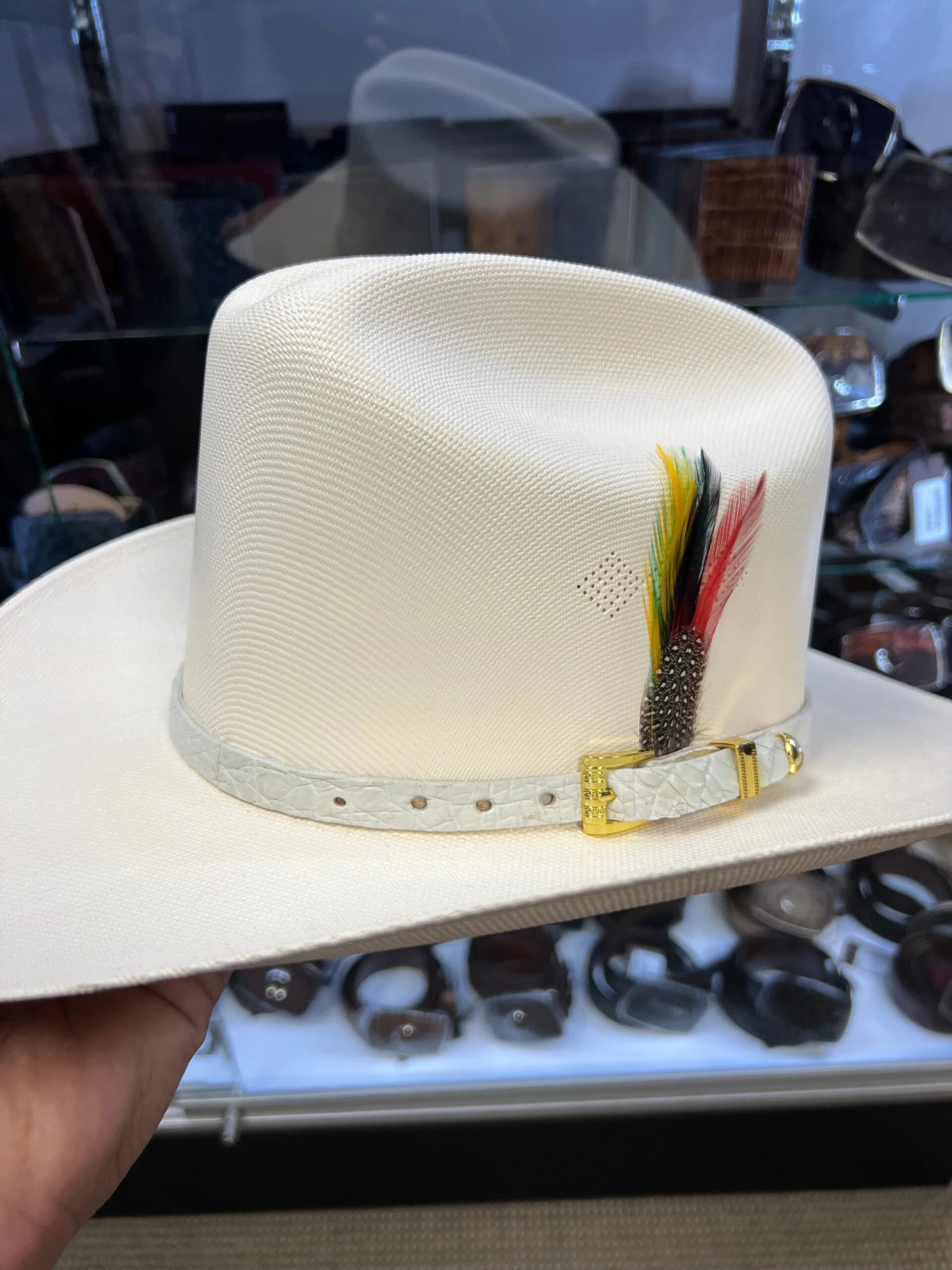 Genuine Winter White Caiman Leather Hat Band
